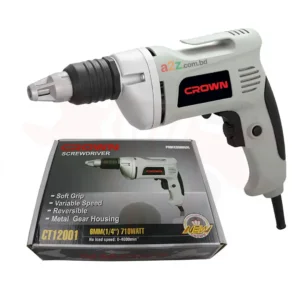 CROWN CT10113 হলো একটি শক্তিশালী ও টেকসই 280 ওয়াট ইলেকট্রিক ড্রিল মেশিন, যা ঘরোয়া ও পেশাদার দুই কাজের জন্যই আদর্শ। এতে রয়েছে 10 মিমি কীলেস চাক, রিভার্স ফাংশন, 2-স্পিড গিয়ার সিস্টেম, এবং আরামদায়ক রাবার গ্রিপ হ্যান্ডেল। হালকা ওজন (মাত্র ১.৩৬ কেজি) ও দৃঢ় বডি ডিজাইন এটিকে দীর্ঘসময় ব্যবহারে আরামদায়ক করে তুলেছে।
