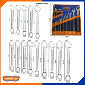 14‑Piece Combination Spanner Set (6‑32 mm) by WADFOW — Cr‑V স্টীল নির্মিত, পলিশড ও ক্রোম‑প্লেটেড ফিনিশ, সব ধরনের বাদি‑নাটের জন্য এক সেটে।