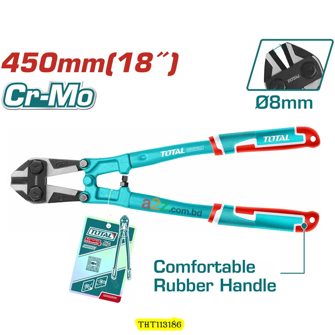 THT113186 18” বোল্ট কাটার হালকা ও মাঝারি কাজের জন্য আদর্শ। এর Cr-V ব্লেড দীর্ঘস্থায়ী এবং শক্ত, যা রড, চেইন, এবং স্টিল বোল্ট সহজে কাটতে সক্ষম। ব্লেড পলিশড ও ব্ল্যাক ফিনিশড, ঘষা ও ক্ষয় কমায়।