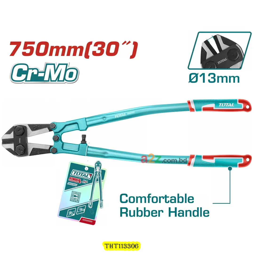 THT113306 30” বোল্ট কাটার হেভি কাজের জন্য উপযুক্ত। শক্ত Cr-V ব্লেড ব্ল্যাক ফিনিশড ও পলিশড, যা ঘর্ষণ কমায়। TPR টু-কালার হ্যান্ডেল দীর্ঘ সময়ের জন্য আরামদায়ক এবং নিরাপদ।