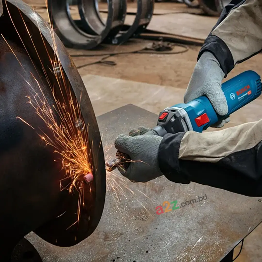 মেশিনের লকেবল সুইচ ও লং-ডিউরেশন কাজের জন্য নিরাপদ ও আরামদায়ক কন্ট্রোল প্রদান করে। এর 1.7kg লাইটওয়েট ডিজাইন এবং Compact Spindle Collar নিশ্চিত করে নিখুঁত হ্যান্ডলিং ও দীর্ঘসময় ব্যবহারযোগ্যতা। Bosch-এর টেকনোলজি নিশ্চিত করে দীর্ঘস্থায়ী পারফরম্যান্স, স্থায়িত্ব এবং উচ্চমানের কাজ।