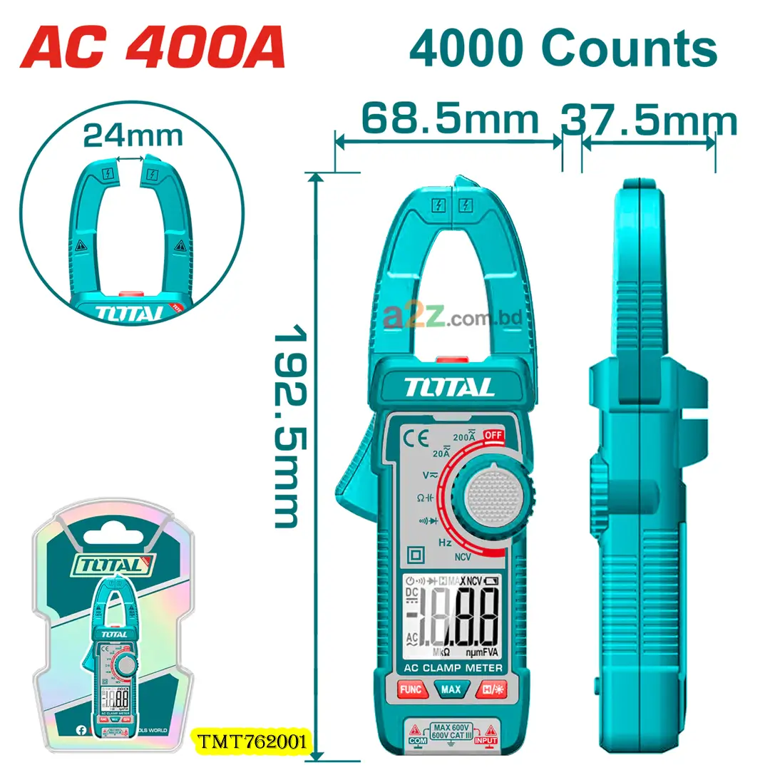TMT762001 Digital AC Clamp Meter – True RMS 4000 Counts, NCV, Data Hold ও Auto Power Off সহ একটি নির্ভরযোগ্য ইলেকট্রিক্যাল মেজারিং টুল।
