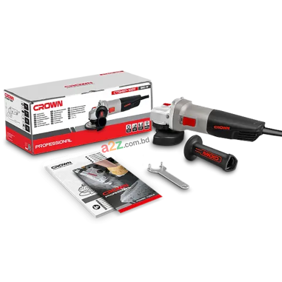 Crown CT13217 – 1,010W শক্তিসম্পন্ন 5″ (125 মিমি) অ্যাঙ্গেল গ্রাইন্ডার, 11,000 RPM স্পিড ও M14 স্পিন্ডল থ্রেডসহ — হেভি-ডিউটি কাটিং ও গ্রাইন্ডিং কাজে আদর্শ।