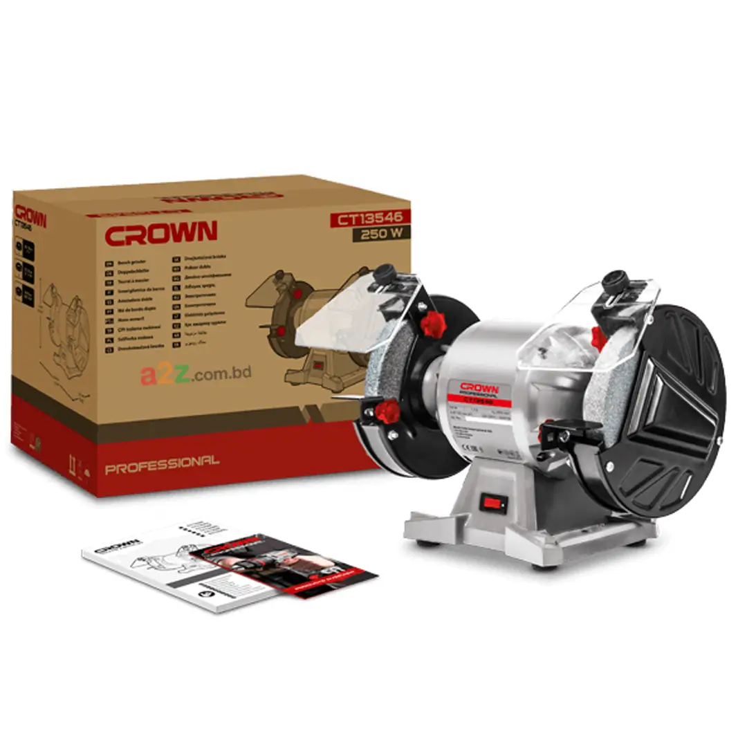Crown CT13547 – 350W বেঞ্চ গ্রাইন্ডার, ≈200 মিমি দুই ডিস্ক, 2,840 RPM স্পিড সহ – ওয়ার্কশপ গ্রাইন্ডিংয়ের জন্য উপযুক্ত।