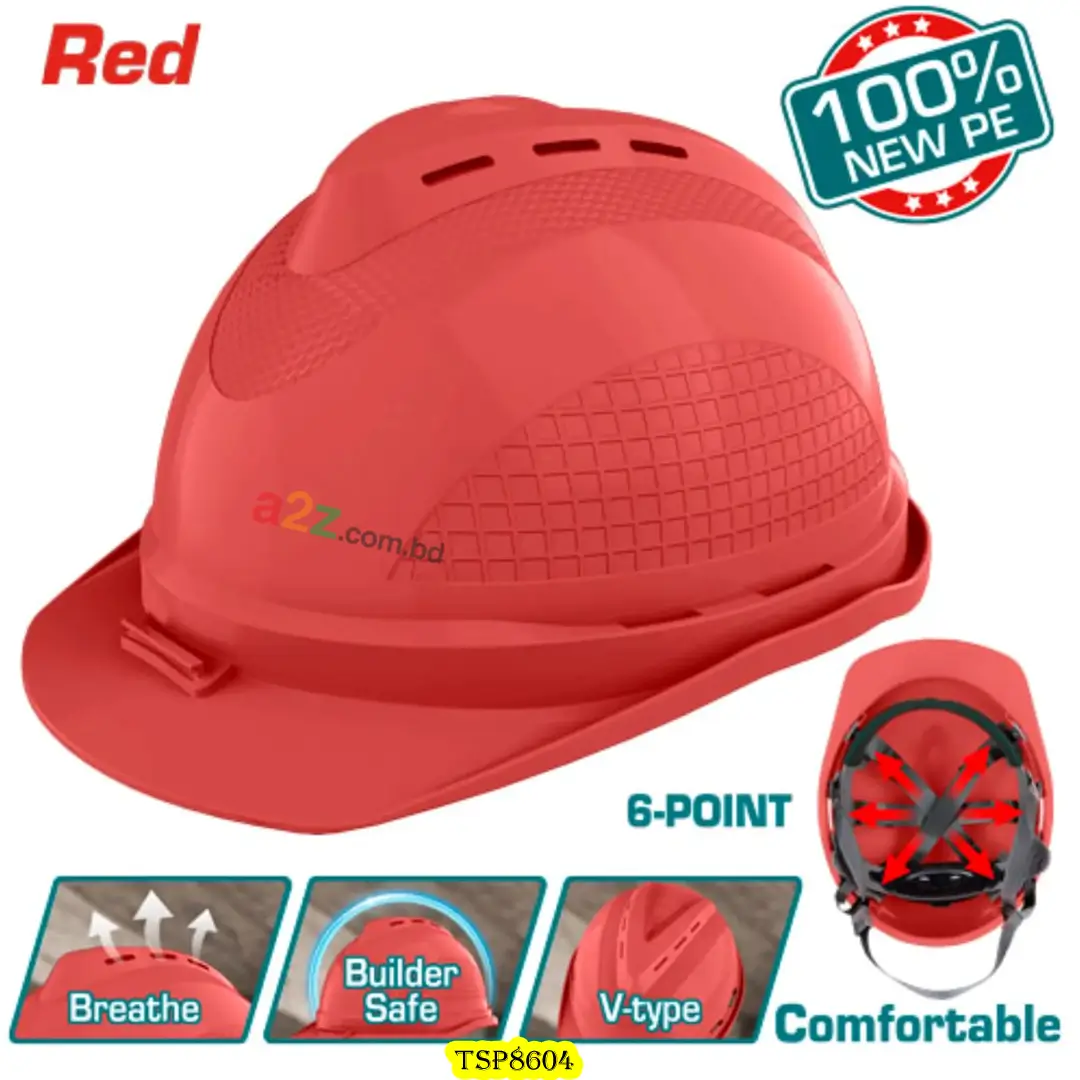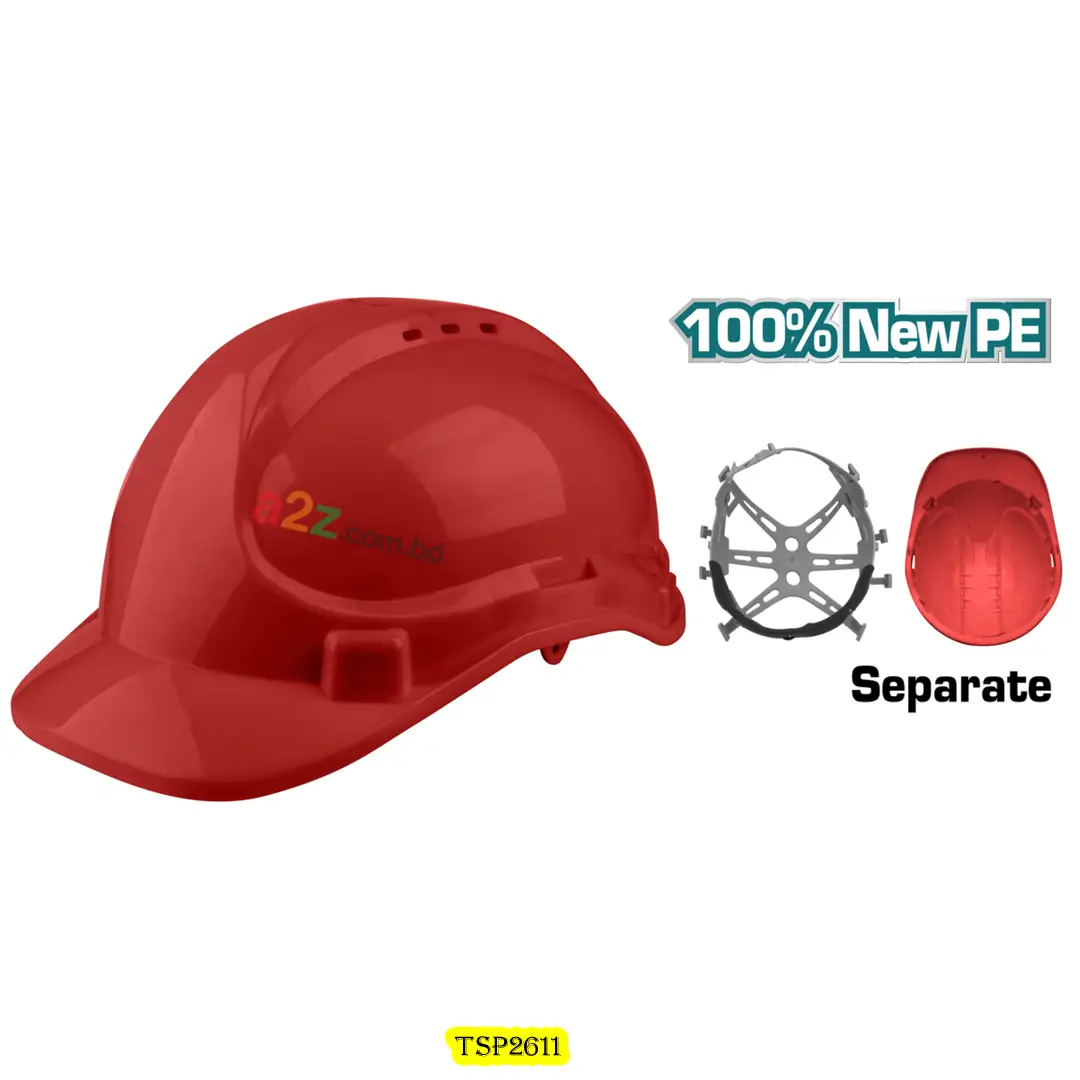 TSP2611 Safety Helmet মূলত একই স্ট্রাকচার ও সেফটি ফিচারসহ তৈরি, তবে আলাদা লাল রঙে, যা অনেক সময় সুপারভাইজার বা সেফটি অফিসারদের জন্য আলাদা করে ব্যবহার করা হয়।