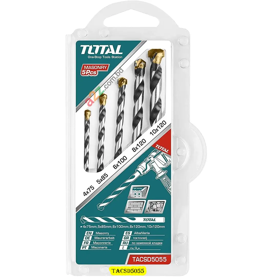 TACSD5055 হলো 5 পিসের উচ্চমানের Masonry Drill Bits Set, যা কংক্রিট, পাথর, ইট, ব্লক এবং কঠিন নির্মাণ সামগ্রীতে ড্রিল করার জন্য বিশেষভাবে ডিজাইন করা। শক্তিশালী কার্বাইড টিপ এবং টেকসই স্টিল বডি বিটগুলোকে দীর্ঘস্থায়ী ও হেভি-ডিউটি ব্যবহারের উপযোগী করে।