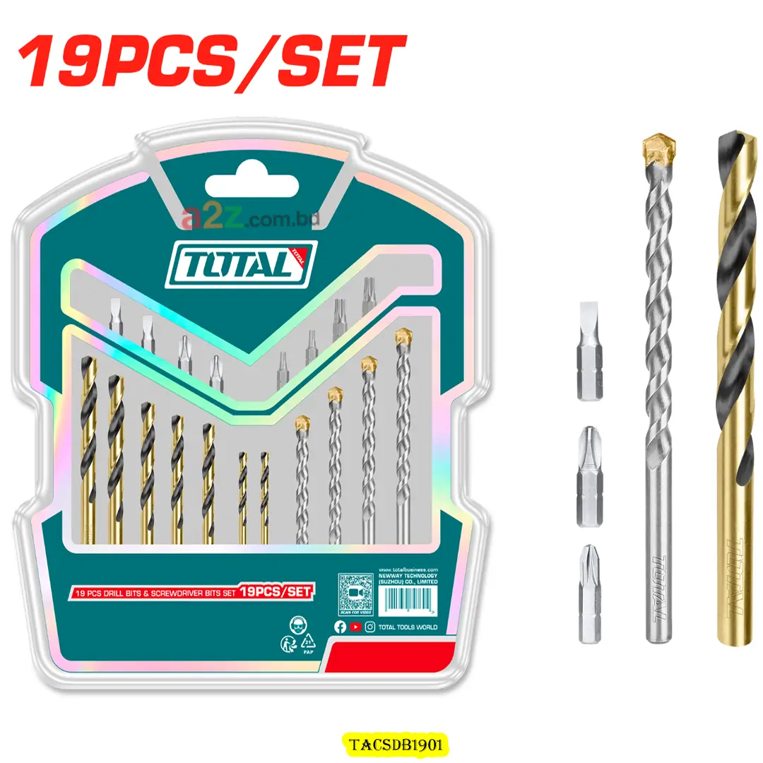 TACSDB1901 একটি ১৯-পিস ড্রিল ও স্ক্রু ড্রাইভার বিট সেট। এতে রয়েছে HSS রোলিং টুইস্ট ড্রিল বিট, মেসনরি ড্রিল বিট এবং বিভিন্ন স্ক্রু ড্রাইভার বিট।