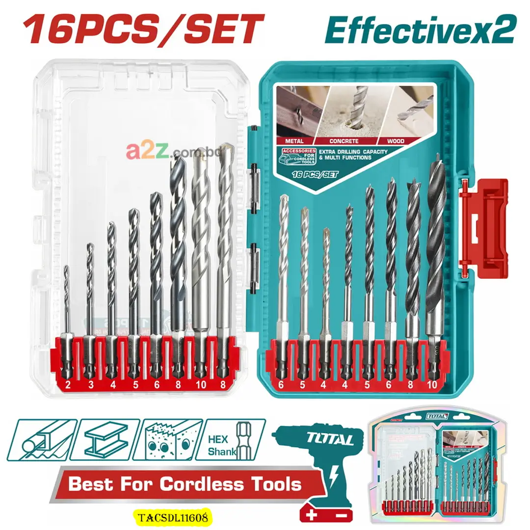 TACSDL11608 16 Pcs Drill Bits Set পেশাদার এবং হোম ব্যবহার উভয়ের জন্য ডিজাইন করা হয়েছে।