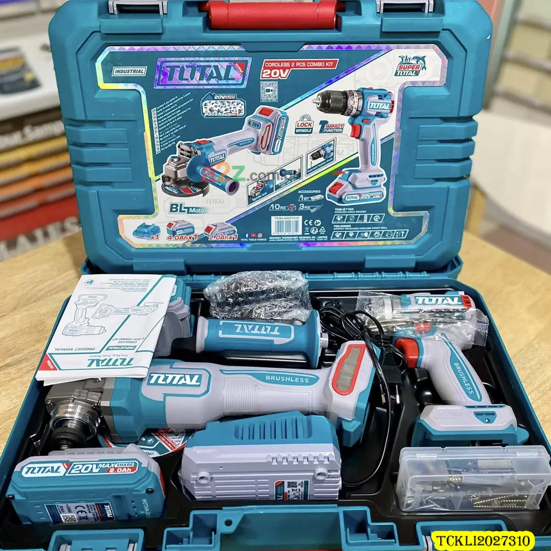 20V TCKLI2027310 Cordless Combo Kit—Brushless Angle Grinder ও Impact Drillসহ, শক্তিশালী, টেকসই ও প্রফেশনাল কাজের জন্য উপযোগী।