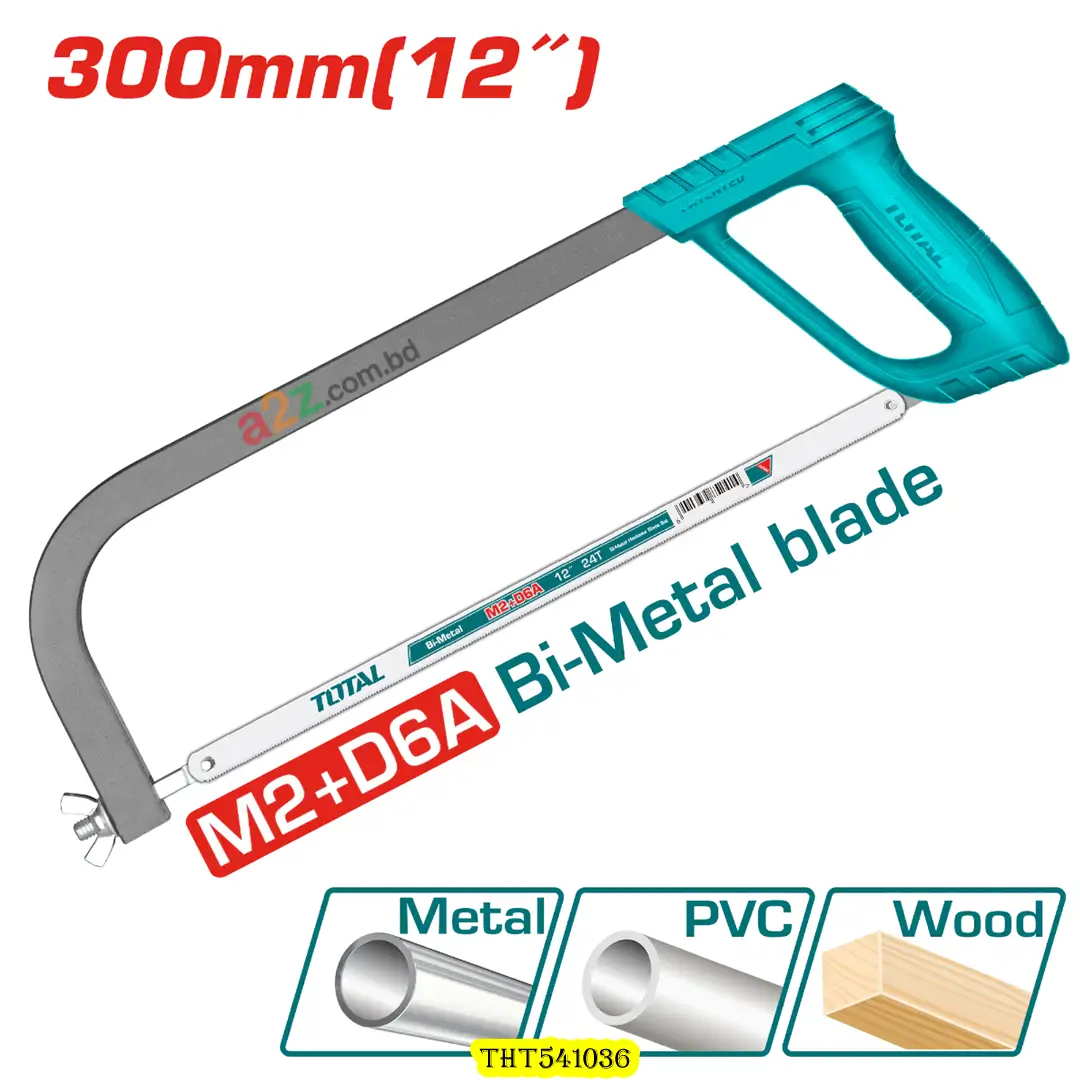 THT541036 12″ Hacksaw Frame, Bi-Metal Blade (24 TPI), ABS Soft Grip Handle সহ, ধাতু, প্লাস্টিক ও কাঠ কাটার জন্য উপযুক্ত।