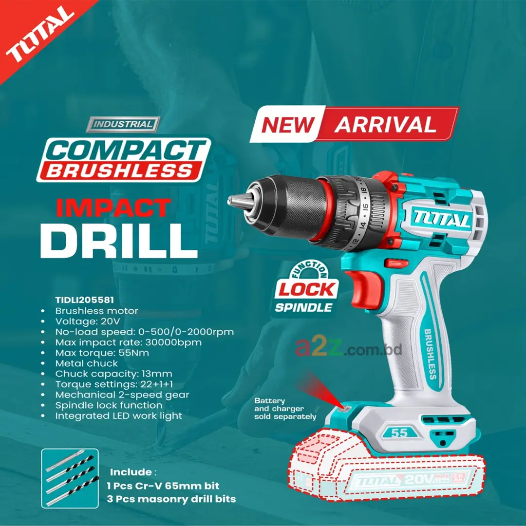 Powerful 20V Brushless Cordless Impact Drill TIDLI205581 – হাই টর্ক 55Nm সহ