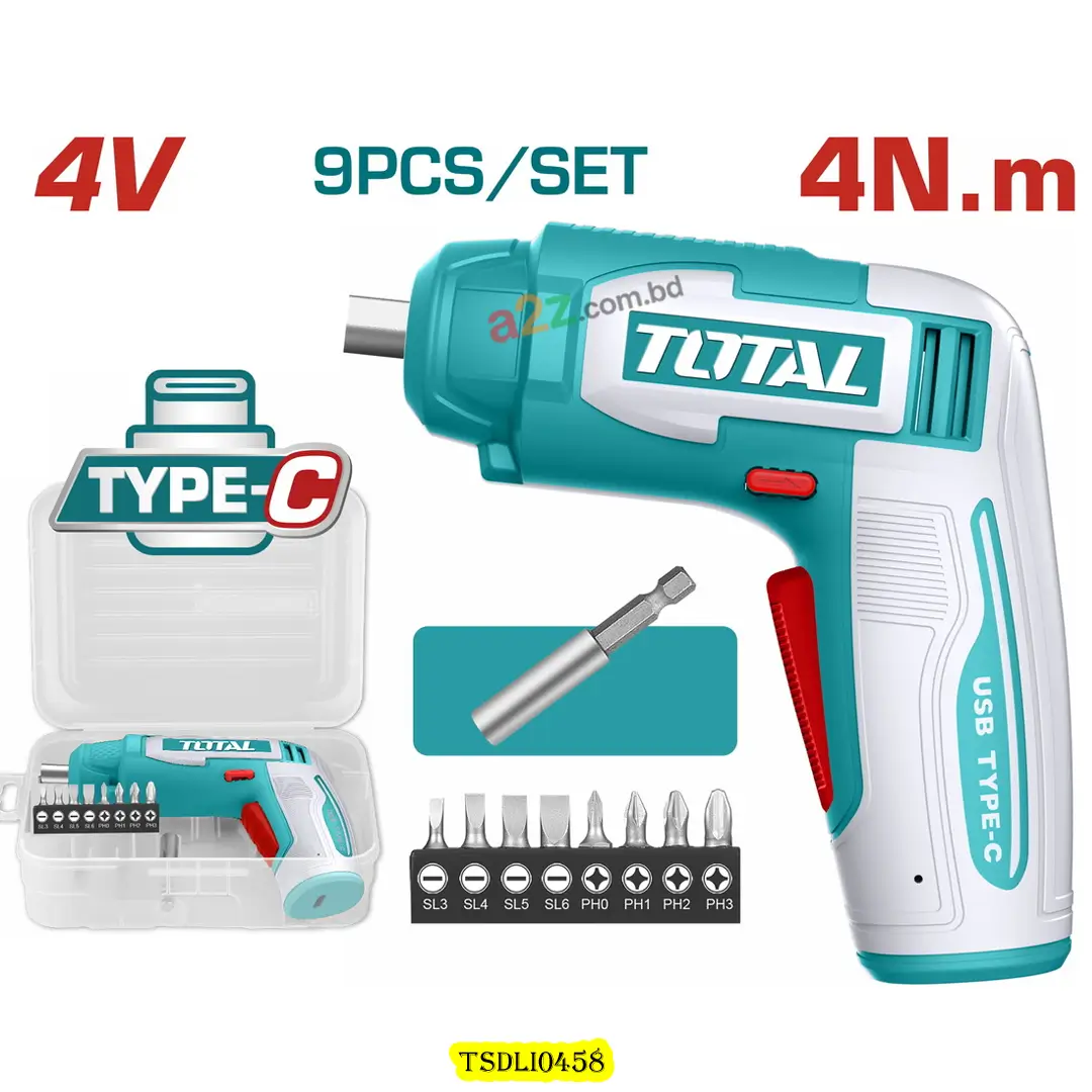 TSDLI0458 4V Cordless Screwdriver — USB Type-C চার্জিং, 4Nm টর্ক ও LED লাইটসহ কমপ্যাক্ট সমাধান।