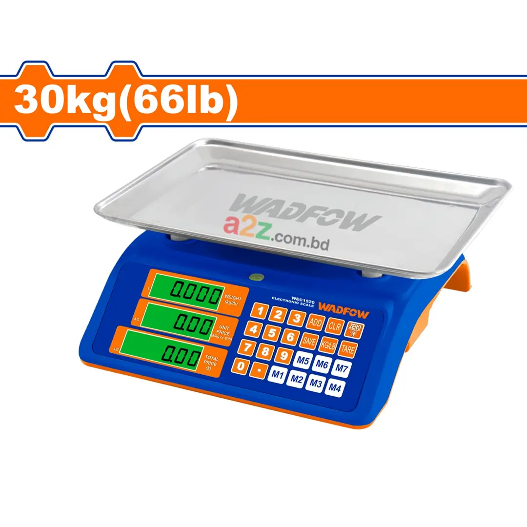 WEC1203 হলো একটি উচ্চক্ষমতা সম্পন্ন ডিজিটাল ইলেকট্রনিক স্কেল, যা 30 কেজি পর্যন্ত ওজন পরিমাপ করতে সক্ষম। 2 গ্রাম গ্র্যাজুয়েশন এবং LED ডিসপ্লের মাধ্যমে এটি খুবই সঠিক ও সহজে পাঠযোগ্য ফলাফল প্রদান করে।