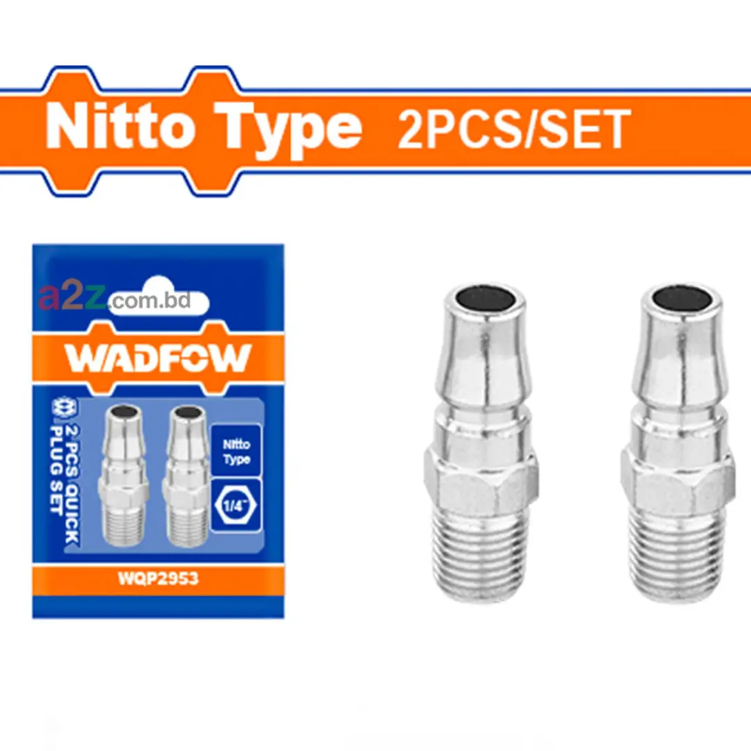 WQP2953 Quick Plug Set হলো একটি high-quality Nitto type সংযোগকারী সেট, যা দ্রুত এবং নিরাপদ air hose / pneumatic tool কানেকশন নিশ্চিত করে। সেটটিতে রয়েছে 2 pcs male thread plugs, যা সহজ ইনস্টলেশন এবং long-lasting ব্যবহার নিশ্চিত করে।