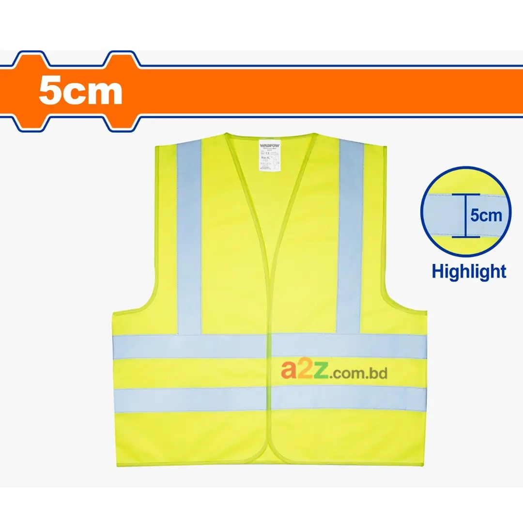 High visibility WRV1802 Reflective Vest with 5cm reflective strip, Polyester Tricot fabric, Fluorescent Yellow color, EN471 Class 2 certified—ideal for night safety, construction, and traffic work.