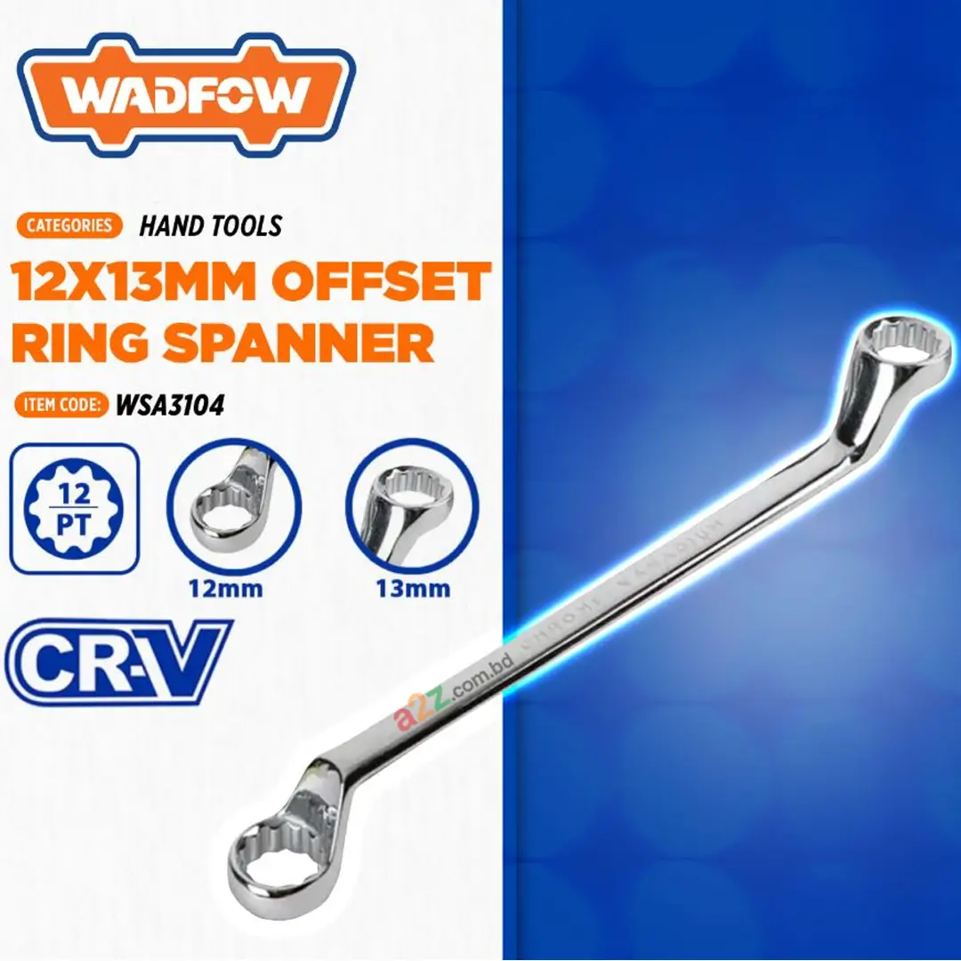 Durable Wadfow WSA3104 Offset Ring Spanner (12x13mm), Cr-V Steel, Rust-Resistant, 186mm Length.