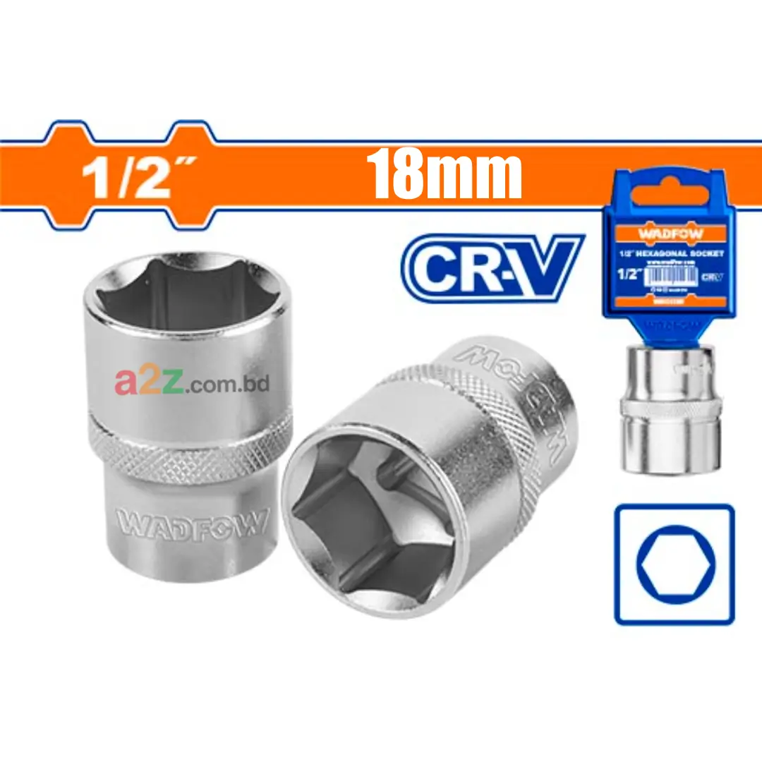 WSC1218 18 mm 1/2″ hex socket, 50BV30 alloy, heat-treated, chrome-plated; ideal for automotive and industrial use.