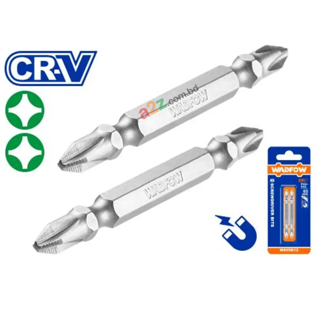 WSV0K12 Screwdriver Bits PH2+PH2, 65mm, Double-End, CR-V Hardened, 2pcs/Set, Sandblasted Surface.